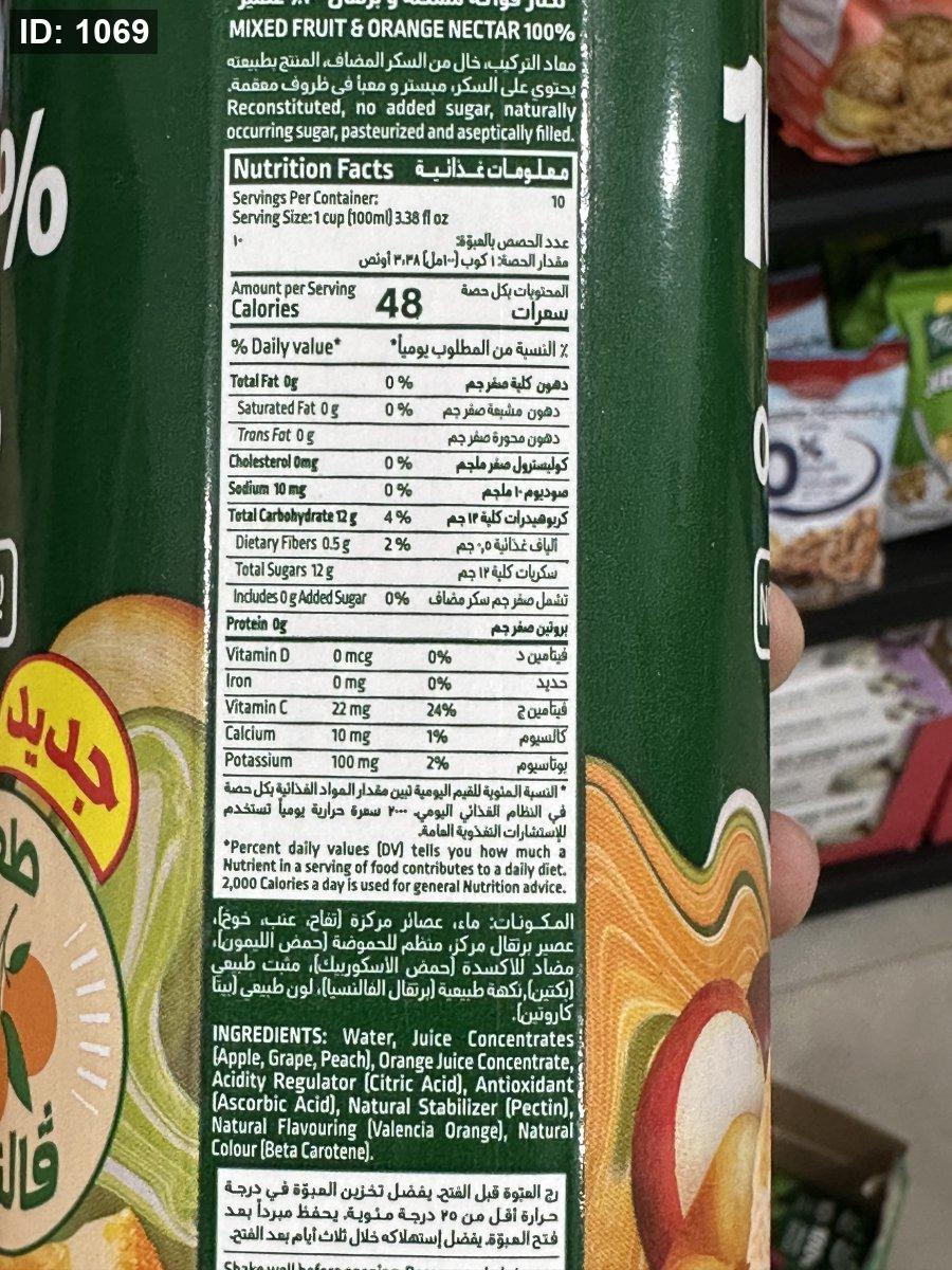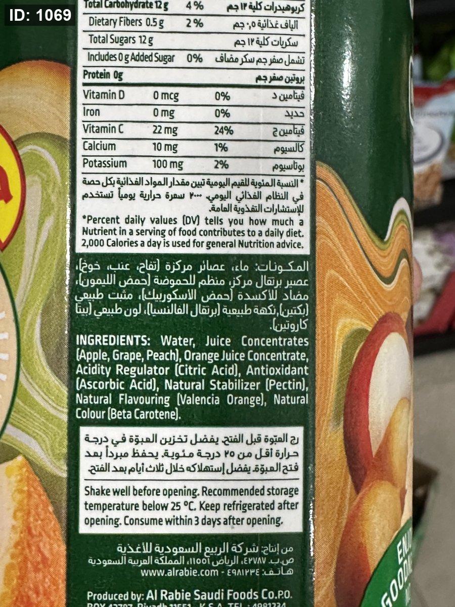 عصير الربيع الطبيعي فواكه المشكله مع البرتقال بدون سكر مضاف بدون مواد حافظه لتر
