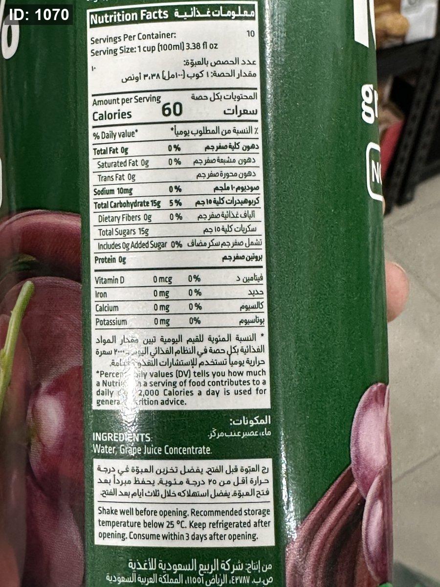 عصير العنب الطبيعي بدون سكر مضاف بدون مواد حافظه