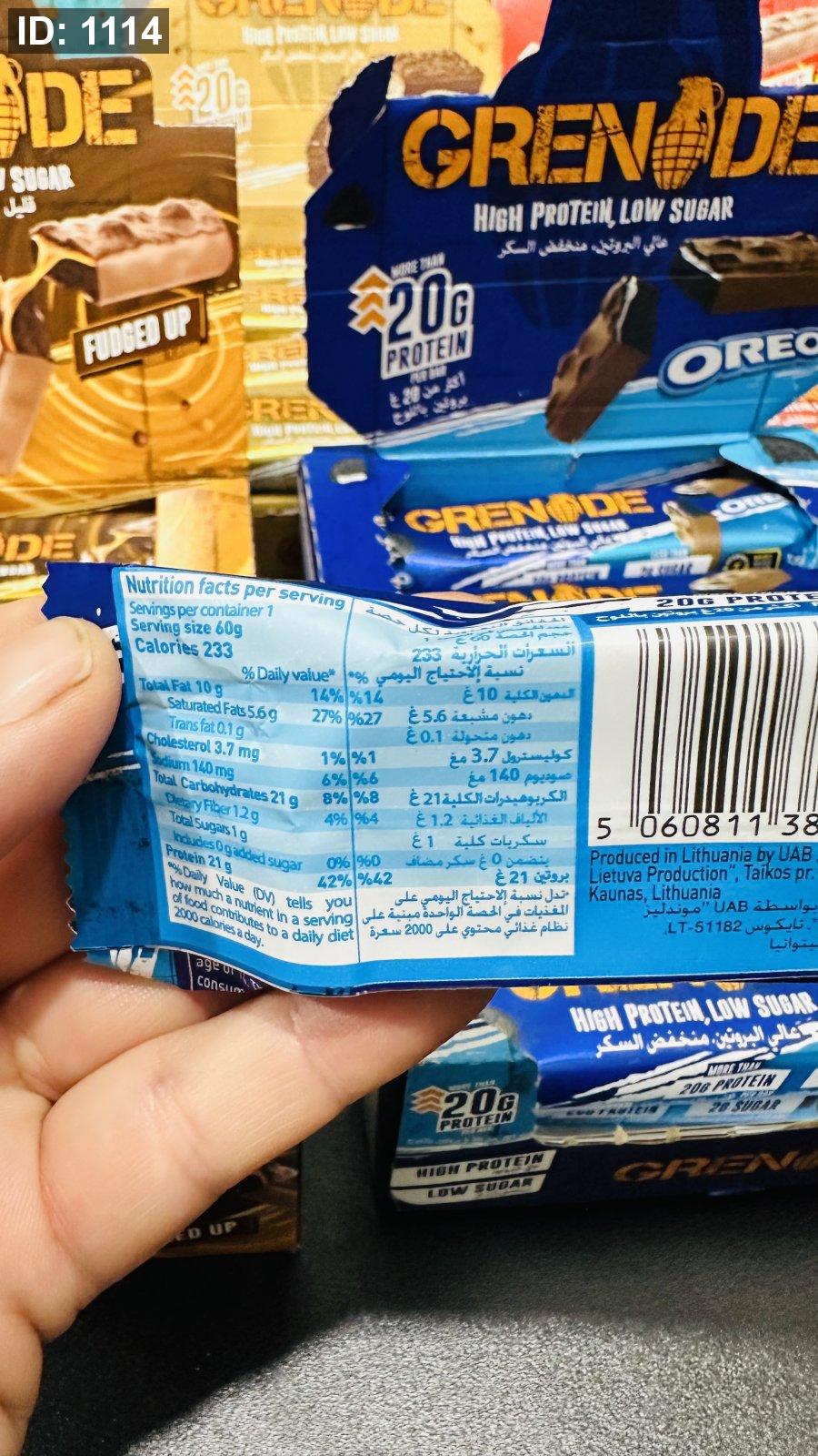 لوح Grenade بطعم الاوريو 20غم بروتين بدون سكر مضاف 60غم