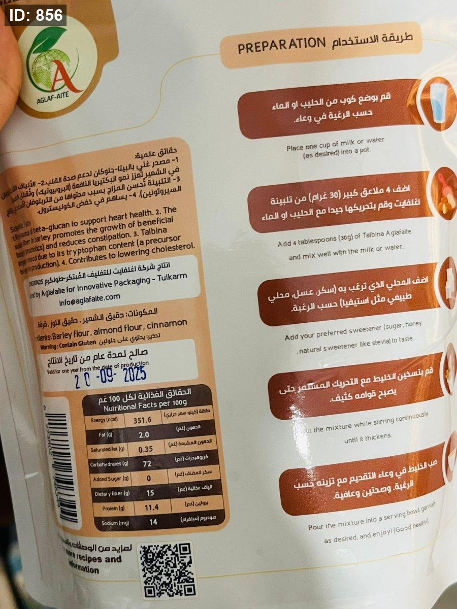 التلبينه النبوية مع قطع الشوكلاته بدون سكر مضاف بدون مواد حافظة 500غم