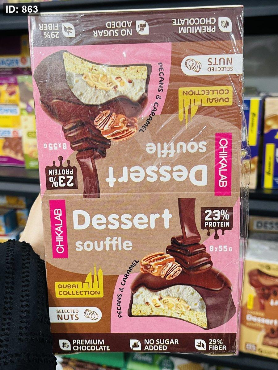 كوكيز مغطى بالشوكولاته بحشوة السوفلي مع الجوز والبيكان والكراميل بدون سكر مضاف