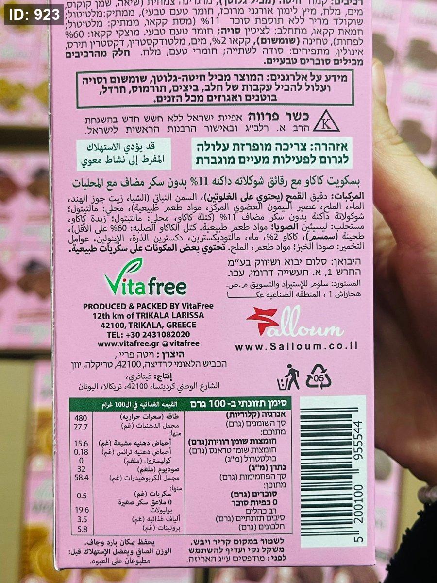 بسكوت الكاكاو من القمح الكامل مع رقائق الشوكلاته الداكنه بدون سكر مضاف 200غم