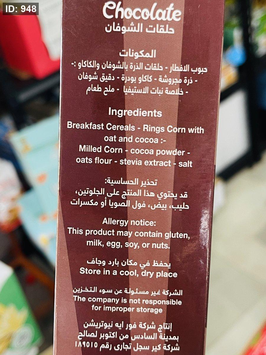 كورنفلكس حلقات بالشكولاته محلاه بالاستيفيا بدون سكر مضاف250 غم
