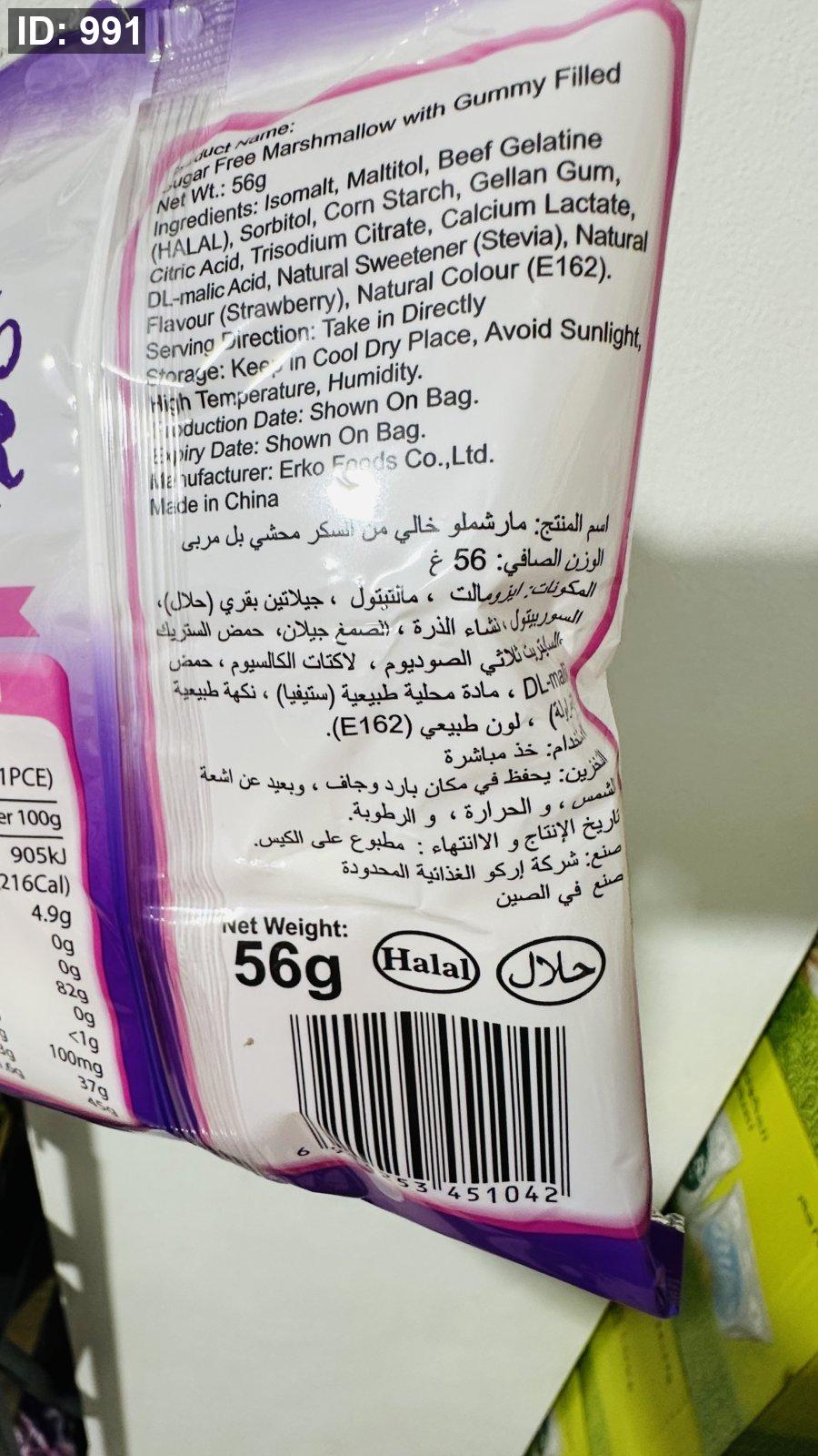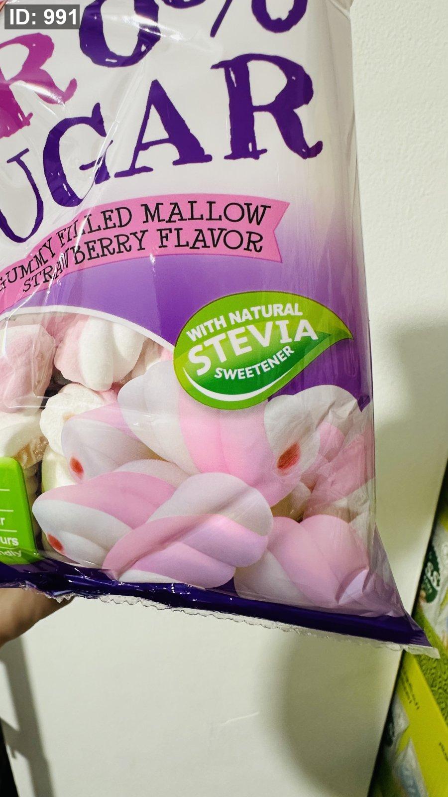 كيس مارشميلو محشي بالفراوله بدون سكر مضاف خالي من الجلوتين